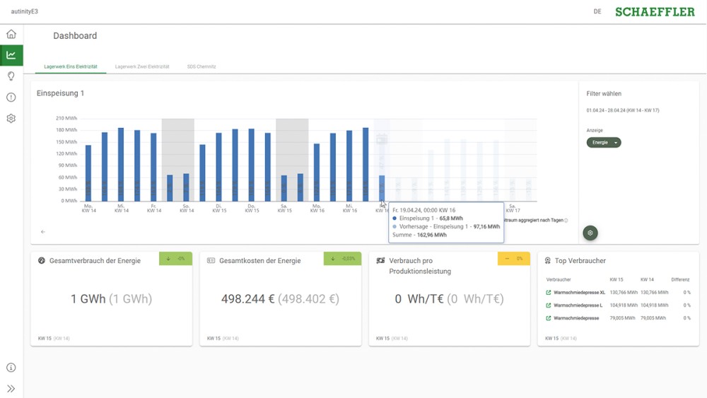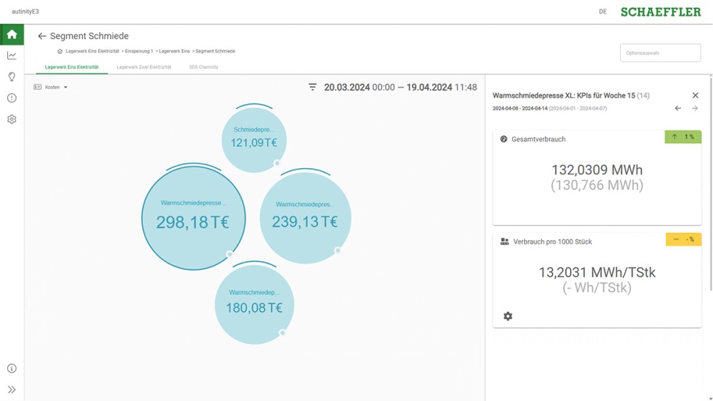 Sie erhalten gezielte KPIs für jeden Verbraucher und einzelne Produkte. autinityE3 bietet eine einfache Übersicht über den Verbrauch pro produzierter Stückzahl inklusive der Anzeige des Trends.
