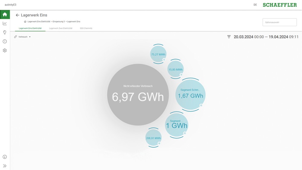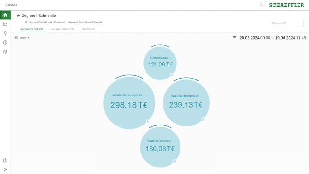 autinityE3 bildet die Struktur der vorhandenen Verbraucher ab – von der Werkseinspeisung bis zur einzelnen Maschine. Sie bekommen einen Überblick, wo wie viel verbraucht wird, und können Verbraucher miteinander vergleichen. Selbst undefinierbarer Verbrauch wird als „Blinder Fleck“ angezeigt mit dem Ziel einer lückenlosen Überwachung.