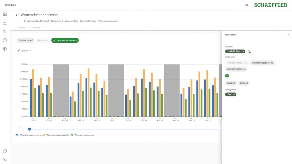 Mit autinityE3 können Sie Maschinen über Produktionslinien und Abteilungen hinweg miteinander vergleichen. Dadurch erkennen Sie weitere Einsparpotenziale und können bewährte Effizienzmaßnahmen adaptieren.
