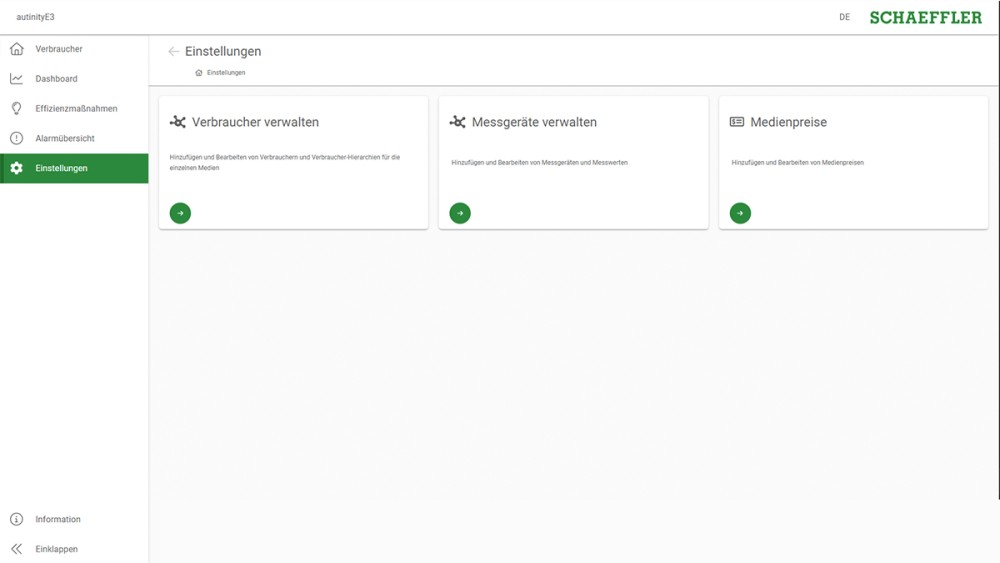 Die Benutzeroberfläche des autinityE3 wird im Browser geöffnet. Verschiedene Analysetools und Ansichten stellen den Verbrauch übersichtlich dar und können ohne lange Einarbeitungszeit bedient werden. Die Konfiguration der Verbraucherstruktur und der Messgeräte ist einfach gehalten, sodass Sie das System schnell in Betrieb nehmen können.